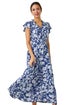 Floral Print Frill Detail Midi Dress from Roman. Feminine florals combine with delicate frills to create this pretty, midi dress. Cut from a cool, woven fabric this piece features a v neckline trimmed with pretty frill detail. Short frill sleeves, a shirred waist and a tiered hem add extra striking detail. A partial open front is finished with simple button detail. The skirt falls in a flattering fit and flare style to its midi length hem line. Add heeled wedges for a smart, casual Summer look!