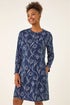 Floral Print Side Button Stretch Dress from Roman. Bring a touch of Autumn enchantment to your wardrobe with this floral print swing dress. Featuring a charming round neckline and flattering knee length, this dress boasts elegant long sleeves and practical side seam pockets. The special side button detail adds a unique touch. For a stylish look, pair with tights and ankle boots and step out on trend this season!