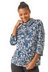 Floral Printed Roll Neck Top from Roman. Embrace floral chic with this stunning printed roll neck top. Featuring an all-over floral print, this piece boasts 3/4 length sleeves and a flattering high roll neck to keep you warm and stylish. The tie detail at the neckline adds a touch of elegance and charm. Pair with jeans and ankle boots for a perfect Autumn/Winter look that effortlessly combines comfort with style!