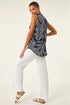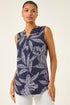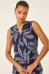 Roman Navy Floral Puff Print Stretch Vest Top