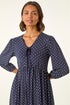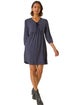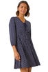 Geometric Bow Stretch Dress from Roman. Geo print short dress with a stylish bow detail and flattering V-neck. Features 3/4 sleeves with elasticated cuffs and an empire shirred waist for a comfortable, fitted look. The fit and flare shape falls to knee length, making it perfect to style with tights and ankle boots for a chic, polished outfit.