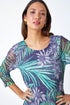 Lace Trim Tropical Mesh Overlay Top from Roman. Take your look to the tropics with this fabulously fun jersey top! Crafted with a mesh sequin overlay and a pretty lace trim under layer, this stretchy jersey top is finished with a beautiful floral print that'll have you ready for Summer in no time. It also has 3/4 length mesh sleeves for a feminine finish. Pair with jeans or cropped trousers to complete your Spring daytime outfits!
