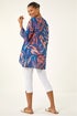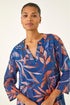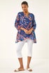 Roman Navy Leaf Print Wrap Front Tunic Top
