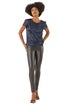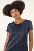 Roman Navy Metallic Sequin Plisse Top