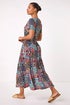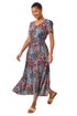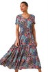Learn moreMulti Print Maxi Dress from Roman. Step into Spring/Summer in style with this stunning multi print maxi dress. Featuring a flattering V-Neckline, shirring at the waist, and charming short sleeves, this dress is both chic and comfortable. The tiered skirt adds a playful touch and ensures a flowy silhouette. Pair with sandals and a denim jacket for a laid-back yet fashionable look that's perfect for any sunny day out!