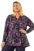 Paisley Print Soft Stretch Top from Roman. Get ready to elevate your Autumn/Winter wardrobe with this stunning paisley print soft top. Designed in a jersey stretch fabric, this top features an eye-catching all-over print and a stylish notch neckline for a touch of sophistication. With long sleeves and a flowy silhouette that finishes at the low hip, this top is perfect for adding a pop of colour to your outfit. Pair with jeans and ankle boots for a chic and stylish look that's perfect for any occasion!