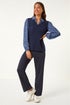 • Roman Navy Petite 2 in 1 Contrast V-Neck Top