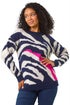 Petite Abstract Knit Jumper from Roman. Rock your Autumn/Winter wardrobe with this cosy round neck jumper. Featuring long sleeves and finishes at the hips, this knitted jumper boasts a comfortable fit and showcases a unique abstract design. Finished with a ribbed detail at the hem and neck for a snug feel. Pair it effortlessly with jeggings and ankle boots for a stylish seasonal look that's both comfortable and chic!