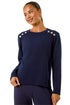 Petite Button Shoulder Knit Jumper from Roman. Elevate your Autumn/Winter style with this chic button detail jumper. Featuring a classic round neckline and flattering long sleeves, this jumper has a modern twist with button detailing and ribbed shoulders. The length finishes at the hips for a versatile look that pairs perfectly with jeans and ankle boots for effortless everyday style.