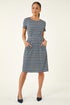 Petite Floral Pocket Dress from Roman. Add a touch of floral elegance to your wardrobe with this stunning knee length dress. Perfect for the Spring/Summer season, this dress features a classic round neckline and short sleeves, making it ideal for all-day comfort. The dress boasts a beautiful floral print and concealed pockets at the front for added convenience. Crafted from a comfortable stretch fabric, this dress offers a flattering fit that you'll love. Pair with trainers for a casual yet chic look.