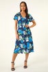 Roman Navy Petite Floral Print Button Dress