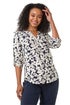 Petite Floral Print Button Through Shirt from Roman. Get ready to bloom this Spring Summer season in this feminine Petite floral button shirt. The flattering v-neckline and charming 3/4 length sleeves enhance your look, while the front button details add a touch of elegance. Crafted from soft stretch jersey fabric, this shirt offers comfort and style. Pair with a denim jacket and jeggings for a fresh look all day long!