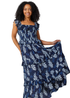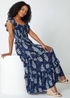 Roman Navy Petite Floral Print Tiered Maxi Dress