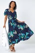Petite Floral Shirred Midi Dress from Roman. Feel floral glamour this season with this elegant Petite midi. Cut from a stretch jersey, this flattering piece boasts comfort and style, detailed with a shirred silhouette that brings in the waist and slightly flares at the skirt and a bold floral print. Pairing the timeless silhouette with a stylish v-neckline and short angel sleeves makes this dress the perfect option for a Summer’s day. Pair this piece with heeled wedges for a dressier look or pair with some black boots for an edgier boho inspired alternative this season.