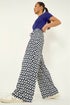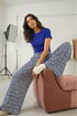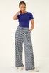 Roman Navy Petite Geo Print Wide Leg Stretch Trouser