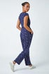 Petite Polka Dot Stretch Jumpsuit from Roman. Elevate your casual collection with this timeless wrap jumpsuit. Ideal for dressing up or down, this piece is cut from a breathable stretch jersey fabric and features a flattering v-neckline and cap sleeve finish. It has pockets for a functional twist as well as a detachable belt for the option of contouring your figure. A classic spot print adds a timeless feeling. Wear with trainers for an eyecatching daytime style or swap out feels heels and you’re ready for a garden party!