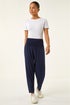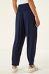 Roman Navy Petite Shirred Straight Leg Stretch Trouser