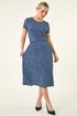 Petite Twist Front Stretch Dress from Roman. Effortlessly chic, this twist front dress is a must-have for your Spring/Summer wardrobe. Featuring short set-in sleeves and a classic round neckline, this midi dress is ideal for any occasion. The twist waist detail adds a touch of elegance and creates a flattering silhouette. Style with sandals and a denim jacket for a laid-back yet stylish look that will take you from day to night seamlessly!