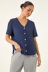 Roman Navy Petite V-Neck Button Through Blouse