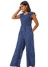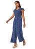 Learn morePolka Dot Shirred Pocket Jumpsuit from Roman. Get spotted this Summer in this pretty, polka dot jumpsuit. Cut from a smooth woven fabric, this piece features a modest round neckline and simple short sleeves with a sweet frill trim. Adorned in a pretty, spot print this piece boasts a stretch shirred bodice and a self-tie fabric belt for shape if desired. Designed in a full-length, wide-leg shape this piece is perfect for the warmer months ahead. Practical pockets add the perfect finishing touch. Add heeled wedges and a denim jacket for the perfect casual outfit.
