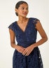 Roman Navy Premium Crochet Lace Midi Dress
