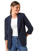 Ruched 3/4 Sleeve Blazer Jacket from Roman. Add a touch of sophistication to any outfit with our ruched blazer jacket. Crafted and lined with a soft woven fabric, this versatile blazer features a collar and rever opening with trendy 3/4 sleeves for a polished look. Complete with practical front flap pockets for your essentials, this tailored blazer finishes at the hips for a flattering fit. Pair with smart trousers and your favourite blouse for a smart outfit!