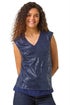 Sequin V-Neck Tunic Stretch Top from Roman. Get ready to sparkle and shine in our fabulous sequin tunic top, the perfect piece for your next Autumn Winter party. Featuring a feminine v-neckline with a chiffon neckband and sleeveless style, this dazzling top is adorned with sequins that are sure to catch the light. Crafted in a comfortable stretchy jersey fabric, and lined with a georgette underlay, this top is both stylish and comfortable. Pair with leather pants and heeled boots for the ultimate party look!