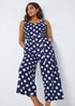 Learn moreSpot Print Belted Jumpsuit from Roman. Nice and nautical, this cropped polka dot jumpsuit is a real statement piece. Cut from a stretch jersey fabric this piece features a round neckline with cute cut out detail. It’s designed in a sophisticated sleeveless style with thick shoulder straps for a secure fit. Adorned in a large polka dot print, this piece is designed in a cropped length and is finished with a self-tie fabric belt for shape and practical side pockets. Add heels wedges for the ultimate Summer look!