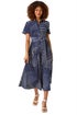 Spot Print Shirt Midi Dress from Roman. Add a touch of retro charm to your wardrobe with this spot print shirt midi dress. This dress features a smart shirt style collar and a round neckline made from a comfortable woven fabric adorned with cute spot prints. The button-through detail and self-tie belt create a flattering silhouette, finishing at a stylish midi length. Pair with a denim jacket and wedged heels for the perfect Spring Summer look.