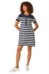 Learn moreStripe Button A-Line Knit Dress from Roman. Get ready to rock a classic look this season with our stripe button knit dress. Crafted from a soft knitted fabric, this dress features a timeless round neckline paired with short sleeves to keep you cosy. The front button details and mock pockets add some extra charm to this knee-length A-line dress in a stripe print. Pair with your favourite boots and tights for an effortlessly stylish look!