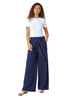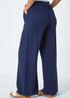 Roman Navy Textured Cotton Wide Leg Trousers