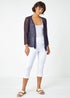 Learn moreTextured Pointelle Detail Shrug from Roman. Your new favourite layer for cooler days, this handy little shrug will become your go-to cover-up for any occasion this Summer. Made from a soft feel pointelle yarn, this lightweight shrug features 3/4 sleeves and finishes at a cropped length with an elongated front. Perfect for layering over dresses in the evening, this scalloped edge cardigan is destined for cruise ships, beach bars and beyond!
