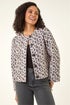 Animal Print Buttoned Jacket from Roman. Unleash your wild side with this statement animal print jacket for the upcoming season. Designed with a round neckline and long sleeves, this comfortable woven fabric jacket features a fierce wild animal print that is guaranteed to turn heads. The button front detail adds a touch of elegance to the edgy design. Pair with wide-leg jeans for a complete look that exudes confidence and style!