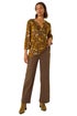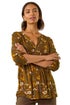 Roman Ochre Textured Floral Pintuck Tunic Top