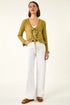 Pointelle Frill Tie Front Top from Roman. Add a touch of femininity to your Spring/Summer wardrobe with this charming pointelle frill knit. Featuring a delicate front tie detail fastening and pretty ruffle trim, this top is perfect for warmer days. The long sleeves offer extra coverage while the lightweight knit keeps you cool. Pair with your favourite jeans and sandals for a fresh and stylish look that's perfect for any casual outing!