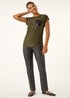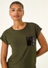 Roman Olive Sequin Pocket Side Ruched T-Shirt