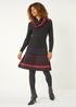 Learn more2 in 1 Nordic Print Scarf Neck Knitted Dress from Roman. Stay cosy this Autumn Winter season with our 2 in 1 nordic print knitted dress. Embrace the trend with a high scarf neckline and long sleeves made to keep you warm. Crafted from a soft knitted fabric, this knee-length dress finishes in a flattering shape featuring a nordic print that's perfect for those chilly days. Pair with your favourite winter boots, tights, and a coat for an effortlessly stylish Autumn look!