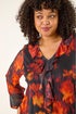 Curve Ruffle Mesh Tunic Top from Roman. Look effortlessly chic this Autumn/Winter in this all over floral printed mesh tunic top. The V-neckline is adorned with a delicate ruffle detail, adding a touch of femininity. Featuring long sleeves with elasticated cuffs, this stylish top finishes at the low hip for a flattering silhouette. Perfect for casual outings, pair this tunic with jeans and ankle boots for a trendy and comfortable look.