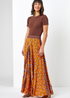 Roman Orange Floral Print Boho Elastic Waist Maxi Skirt