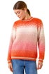 Ombre Tinsel Knit Jumper from Roman. Make a sparkling statement this Autumn Winter in our cosy ombre knit jumper! The classic crew neckline and long sleeves keep you warm, while the soft knit fabric adds a touch of luxury. With a subtle ombre tinsel detail, this jumper is perfect for adding a vibrant festive touch to your wardrobe. Pair with wide leg trousers and ankle boots for a stylish and comfortable outfit that's perfect for the season!