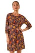 Petite Floral Gathered Short Dress from Roman. Bring on the Autumn/Winter vibes with this petite floral gathered short dress. Featuring a classic round neck and 3/4 sleeves with elasticated cuffs, this dress is designed in a flattering fit and flare shape. The gathered waist adds a touch of elegance and ensures a perfect fit. Pair it with tights and heeled boots for a stylish and comfortable outfit perfect for the cooler seasons.