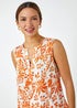 Roman Orange Sleeveless V-Neck Floral Print Vest