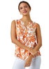 • Roman Orange Sleeveless V-Neck Floral Print Vest