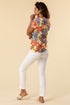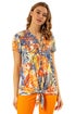 Roman Orange Tropical Print Tie Front V-Neck Stretch Top
