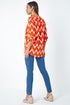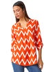 Roman Orange Zig Zag Print V-Neck Pleat Detail Tunic Top
