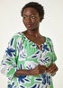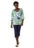 Learn moreFloral Print Tie Front Top from Roman. This tie-front top features a beautiful all-over floral print, with a round neckline and 3/4 sleeves adorned with delicate lace detail for a feminine touch. The tie-front design adds a flattering and adjustable fit. Pair it with jeans and sandals for a relaxed yet stylish look, perfect for casual outings or sunny days!