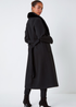 Petite Faux Fur Collar Longline Coat from Roman. Ooze style and glamour while staying cosy and warm with this Petite longline coat. Cut from a smooth woven fabric this coat has a smart revered collar with a removable faux fur trim. This smart coat is fully lined for guaranteed warmth and features a self-tie fabric belt for added shape and security. Falling just below the knee this coat has added pockets for a practical element. Throw over your party dresses for a stylish layer or pair with a jumper and leather trousers with boots for a day of Christmas shopping!