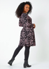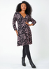 Roman Petite Black Floral Mock Wrap Stretch Dress