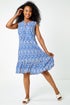 Roman Petite Blue Petite Aztec Print Frill Hem Shift Dress