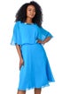 Roman Petite Blue Sequin Trim Chiffon Cape Dress